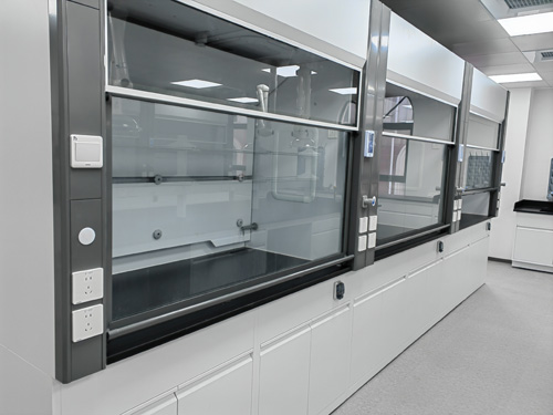 (1)上半部柜身:采加厚設備構造,表面層為鋼殼,內部為實踐室常用為耐強酸強堿6mm厚抗倍特板,具備有防濕濕、防拉伸、抗蠕變等功效;對必須要在廚房操作臺進行洗衣的排風柜,其中襯板需要滿足抗潮和抗灼傷的標準.的外殼與內襯間半層,可裝下水、電、其他氣體供水管道體系,并可抓好柜身氣密性與個人防護。